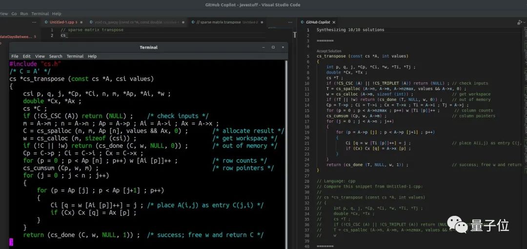 根据已写的内容,它可以给出后续代码建议——不过和我们见到的普通自动补全功能不同,它可以生成诸如整个函数体这样的大段代码。