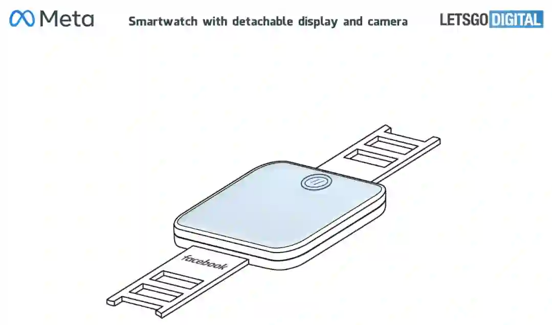 专利的名字是非常朴实的「可穿戴设备的可拆卸摄像头模块」,从中只能看出Meta智能手表想要强调的最显著特色:表身可从外壳上拆卸后单独使用、摄像功能。