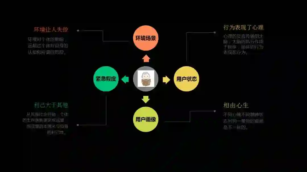 个体因当前所处环境、周期内的心理状态、当前要达成目的、达成目的的紧急程度或迫切程度等多个因素,对个体情绪会有很大影响。而各种因素的影响反馈到用户的动作执行,从而影响事件的触发及发展过程。