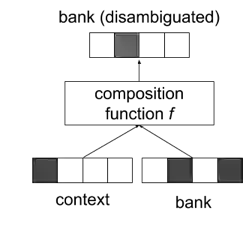 有许多可能的相关语义合成(单词-子词,形容词-名词,动词-介词,子句-子句)。更进一步,我们可以将消歧看作把一个歧义词(如 bank)与其相关的上下文单词(如 river 或 cashier)语义合成的过程。在语义合成期间也可以执行与给定上下文的概念相关的背景常识知识的集成。这种消歧也可能发生在其它层面(例如句子层面、子句层面)。