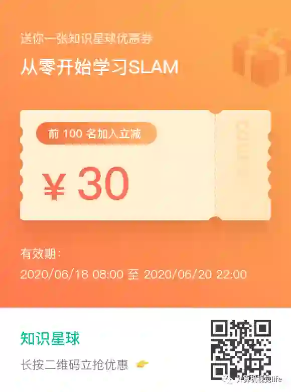 时间无价,万事早为先。学习切忌单打独斗,一个良好的学习圈子能够帮助你快速入门,交流讨论才能少走弯路,快速进步!加入SLAM学习星球,和国内外优秀的SLAM研究者一起交流进步,早日找到理想工作。3天内无条件退款。已经有1350+小伙伴加入,等你来哦