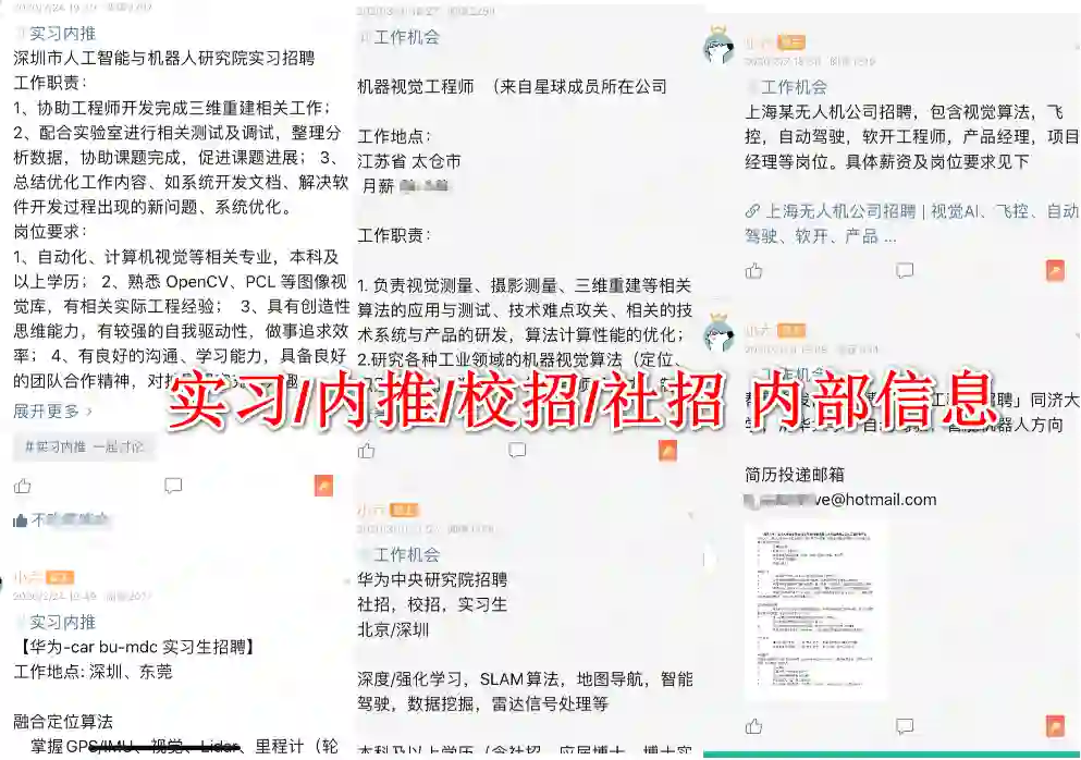 工作机会:第一时间发布三维视觉、SLAM相关内推实习/校招/社招岗位、项目合作、硕博招生等