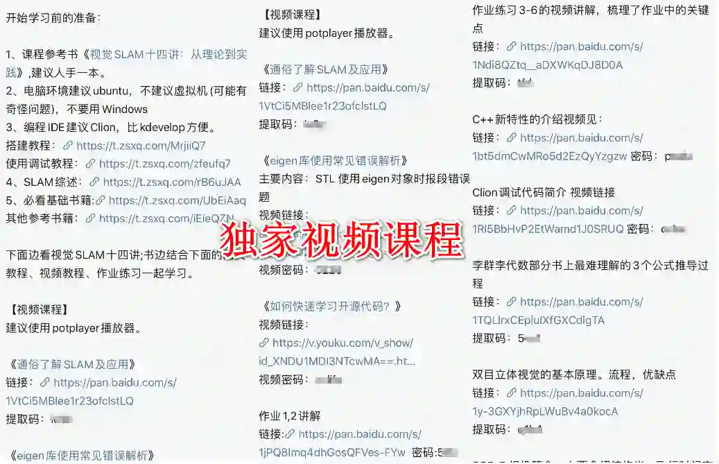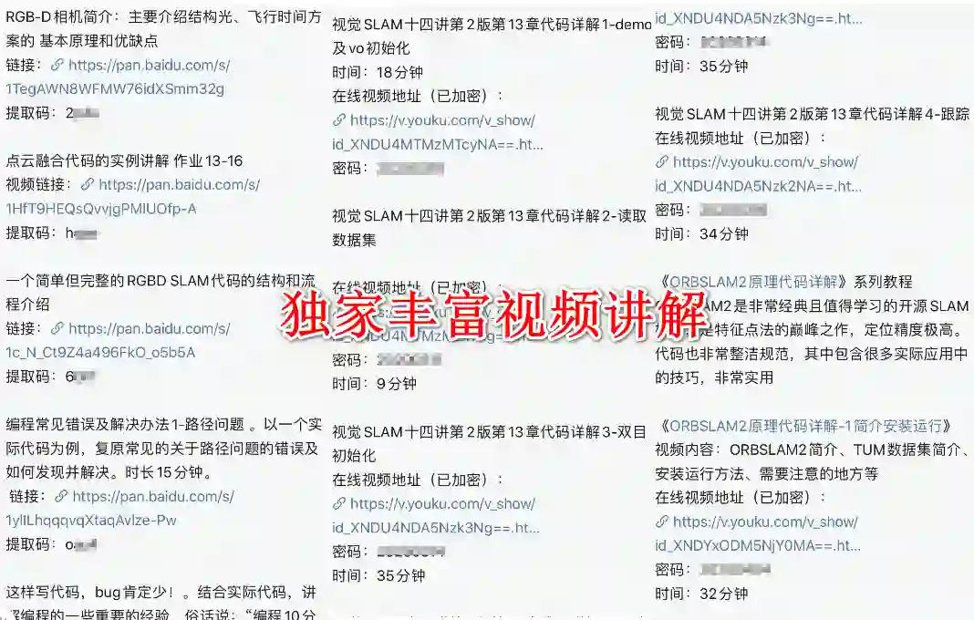 视频教程:ORBSLAM2 逐行代码详解(更新到12课)、环境/第三方库配置使用、作业讲解、疑难/常见错误讲解、VO代码讲解