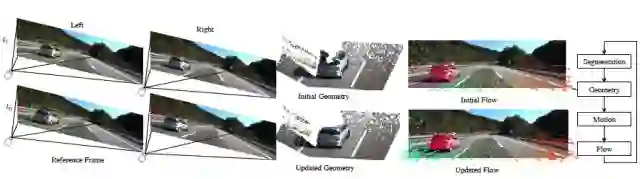 文中设计了一种级联分类框架通过迭代细化语义分割掩模、立体对应、三维刚体运动估计和光流场精确地模拟三维场景。