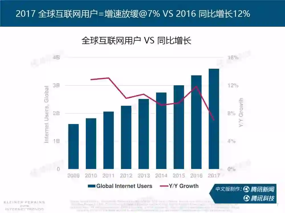 2014-2019年,是互联网用户快速增长又增速放缓的几年。据《2018年互联网女皇报告》,全球互联网用户在2016年达到高峰,随后开始放缓,到了2018年已经很难再有增长。