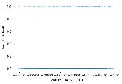 EXT_SOURCE_1的高价值客户的违约率很低。但是,第一个柱(大约8%的默认值)没有遵循特征趋势(先上升后下降)。它只有-99.985左右的负值,而且人口众多。这可能意味着这些值是特殊值,因此不遵循特征趋势。幸运的是,非线性模型学习这种关系不会有问题。但是,对于逻辑回归这样的线性模型,这些特殊的值和空值(将作为一个单独的 柱 显示)应该由一个具有相似违约率的 柱 赋值,而不是简单地用特征均值进行赋值。