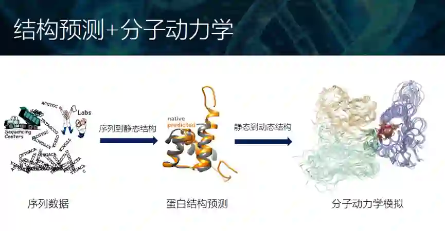 而在生命科学领域,个性化的需求同样非常强烈,因为每一个生物个体都有所不同,就像人类一样,千人千面,只有真正去理解每个人的不同,才能避免基于共有特征的数据模型迁移性差的事实。正是因为结构数据的缺失,结构预测和分子动力学模拟变得非常重要。结构预测可以帮我们从序列化的组学数据出发,生成一个静态的结构,而分子动力学模拟则可以在此基础上提供一些动态的细节,包括不同构向之间的转化。由此可见,人工智能确实可以帮助我们理解生物的功能以及功能的演化。