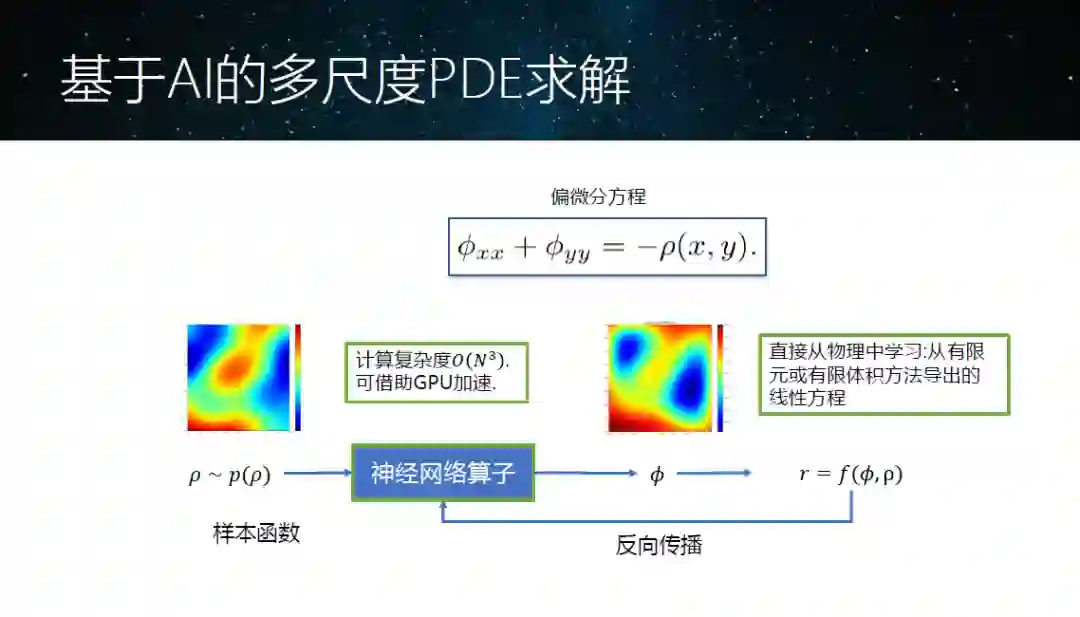 我们提出了一个基于神经网络来学习求解多尺度偏微分方程的算子,它不需要大量的训练数据,可以直接从物理规律中学习,同时还可以通过 GPU 加速,使解题速度比传统的数值解法提高几个数量级。利用这样的新技术,在精度与传统数值解法相当的情况下,我们以10倍的速度成功求解了描述大气湍流的大规模纳维-斯托克斯方程,这对于环境建模、气候预测都可能产生革命性的影响。