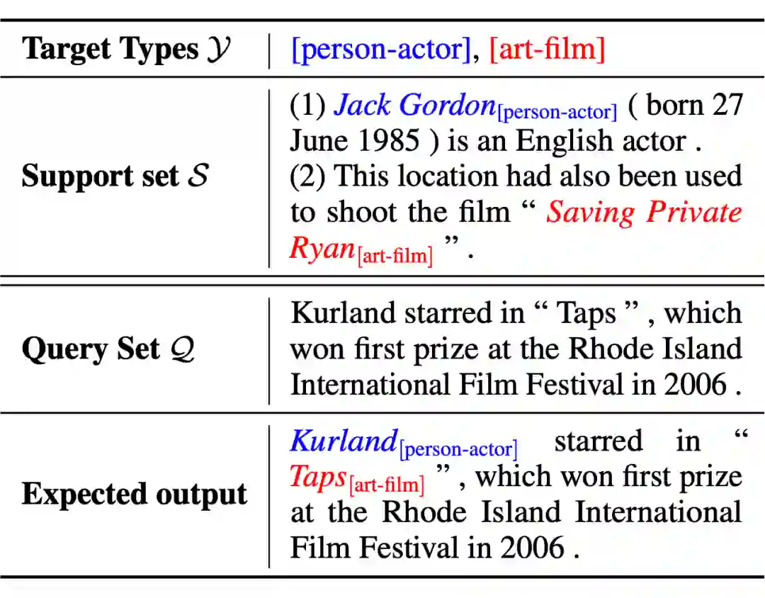 NER 目的在于定位和识别文本跨度中的预定义实体类诸如 location、organization。在标准的监督学习 NER 中深度学习的架构取得了很大的成功。然而,在实际应用中,NER 的模型通常需要迅速适配一些新的未见过的实体类,且通常标注大量的新样本开销很大。因此,小样本 NER 近年来得到了广泛的研究。