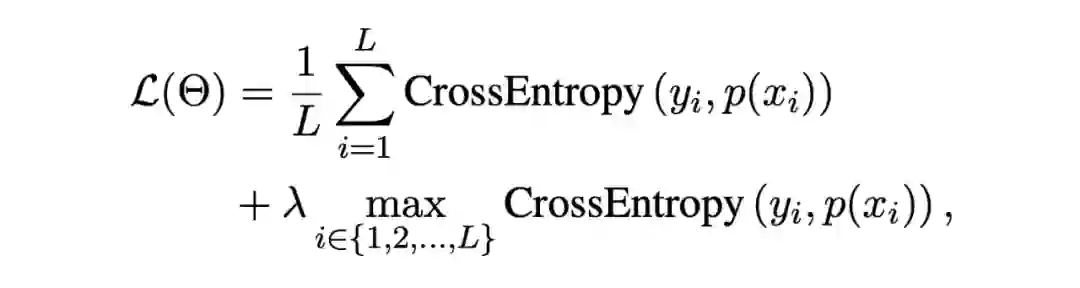 模型的训练误差在交叉熵损失基础上添加了最大值项来缓解对于损失较高的 token 学习不足的问题: