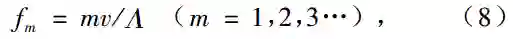 其中 τ=1+√5/2为黄金分割数,ΛA和ΛB是超晶格结构参量, g为Gmn的单位矢量, 垂直于畴界, 见图 1(b). 可以看出, 设计准周期超晶格, 有更多的结构参量可调,更多的倒格矢可选用. 因而在一块准周期超晶格中, 可以同时高效地实现多个光参量过程. 从理论和实验方面研究了二单元 Fibonacci准周期超晶格的超声激发谱、激光倍频谱和电光透射谱. 发现了超声谱结构的自相似性,这是实空间结构自相似性在倒空间中的反映. 而激光倍频谱和电光透射谱,由于折射率的色散效应,谱结构的自相似性遭到破坏. 最近还研究了极化激元的色散谱和介电谱, 都得到了理论与实验相符的结果. 对二构造单元按 intergrowth序列和按Thue-Morse序列,三构造单元按准周期序列构成的超晶格, 以及双周期、 非周期超晶格都进行了系统的研究. 在此基础上建立了设计介电体超晶格的专家系统, 己能按需优化设计介电体格超晶格.