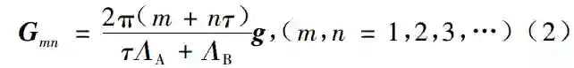 式中Λ为超晶格结构参量, 即超晶格周期, g是Gm的单位矢量, 垂直于畴界, 见图 1(a). 当m=1, G1=2πg/Λ为超晶格的初基倒格矢. 在光参量过程中,使用初基倒格矢, 其转换效率最高. 对二单元Fibonacci准周期超晶格,其倒格矢可表示为