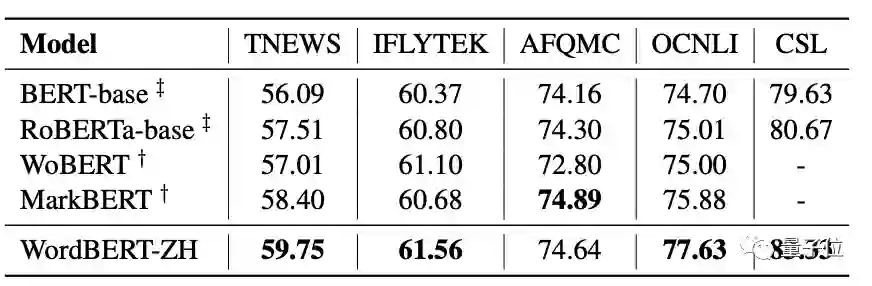 对于“中文版”WordBERT-ZH,研究人员在CLUE benchmark上的各种任务中测试其性能。