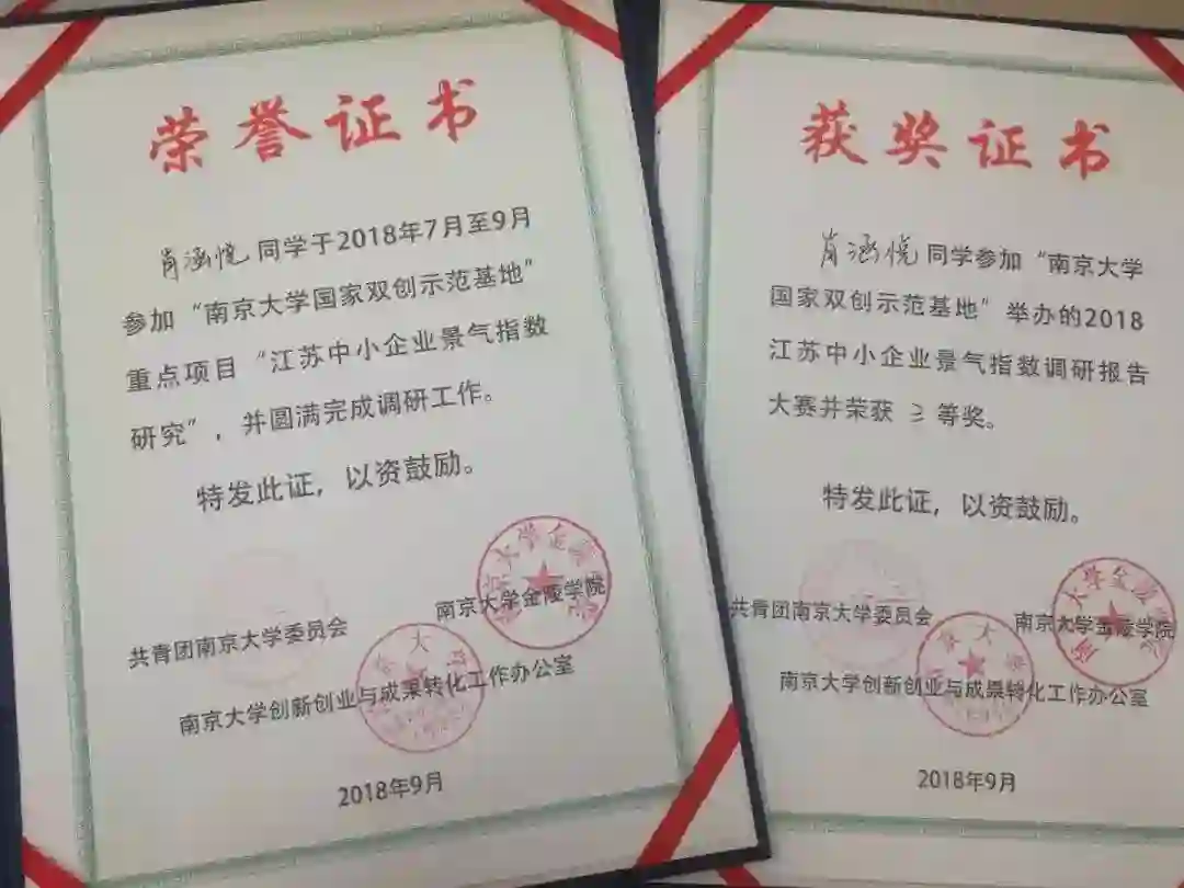 3. 作为江苏省中小企业苏州区调研成员:江苏省中小企业景气调研大赛三等奖。
