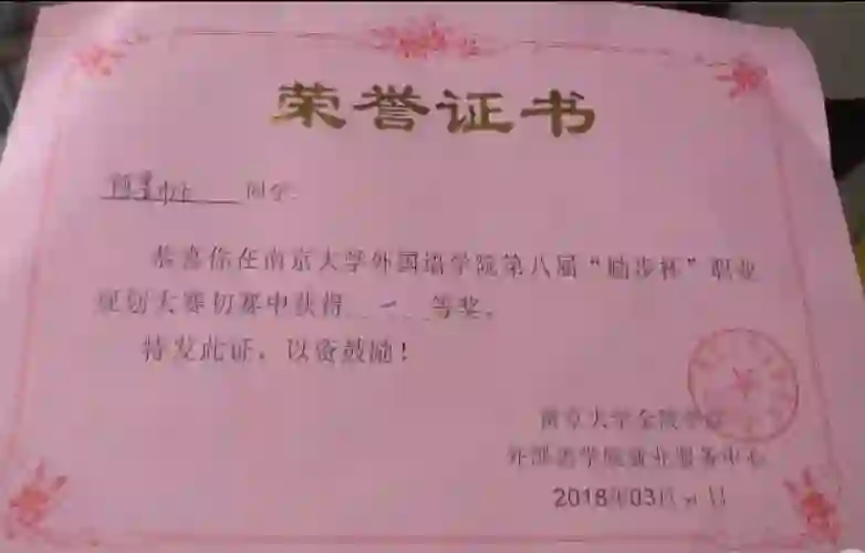 2. 日语成绩:获全国高校日语演讲比赛一等奖。N2成绩176/满分180。