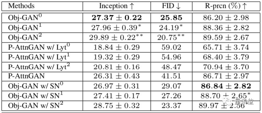 在客观指标上,Obj-GAN在大规模COCO基准测试的各种指标上优于先前的水平,Inception分数提高到了27,大大高于P-AttnGAN只有20左右的得分,FID也降低到了25.85。