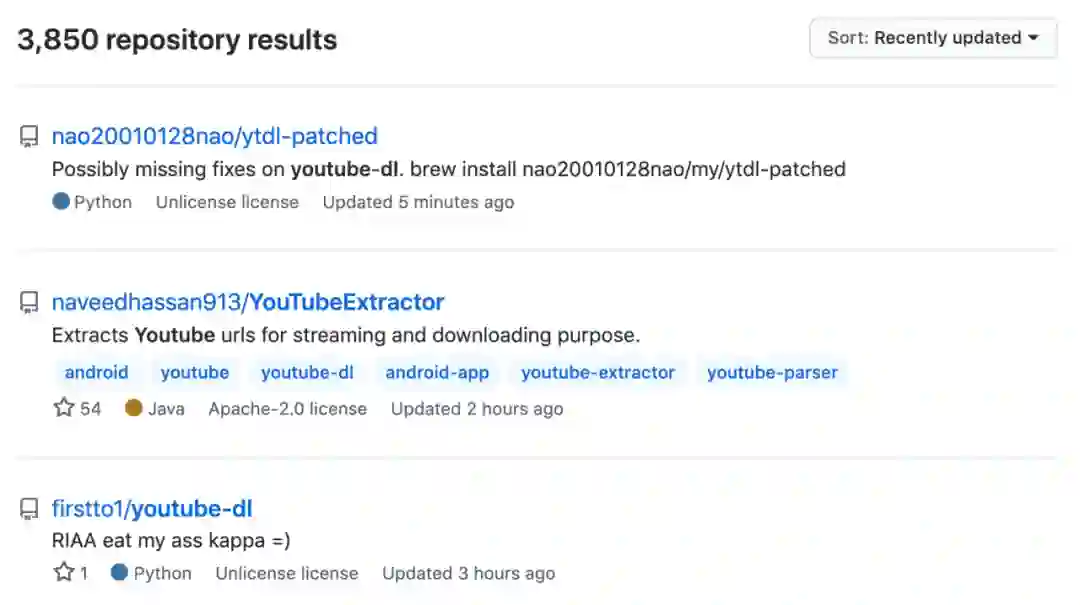 尽管 youtube-dl 已经下架,但 RIAA 此举似乎并未达到目的。