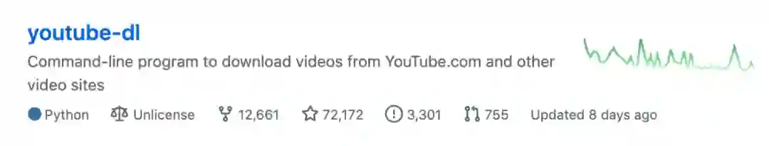 开源项目 youtube-dl 是一个使用 Python 编写的脚本,可以下载热门视频网站的音视频,并转换视频格式和清晰度。它是 GitHub 上的热门项目,获得 7.2 万多星。