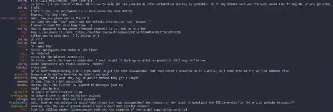 Nat Friedman 积极联络 youtube-dl 的开发者,以期帮助他们重新恢复项目。此前,Nat Friedman 也出现在了 youtube-dl 的 IRC 频道。