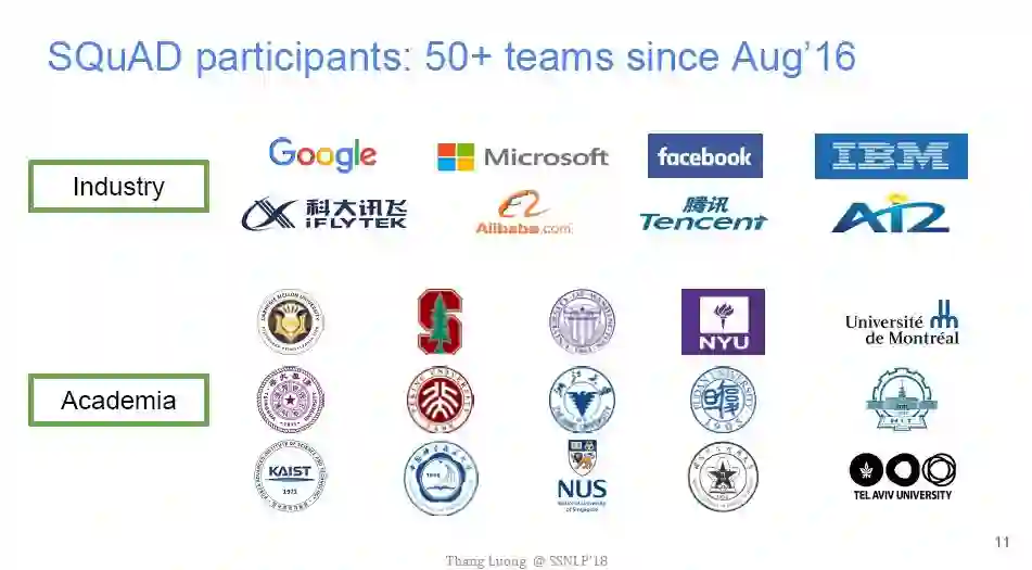 而阅读理解是问答系统的核心问题。其中,斯坦福大学在2016年推出的数据集SQuAD成为了近年来最受瞩目的阅读理解任务。可以说SQuAD对问答系统的重要性,与ImageNet在计算机视觉领域的意义相差无几。