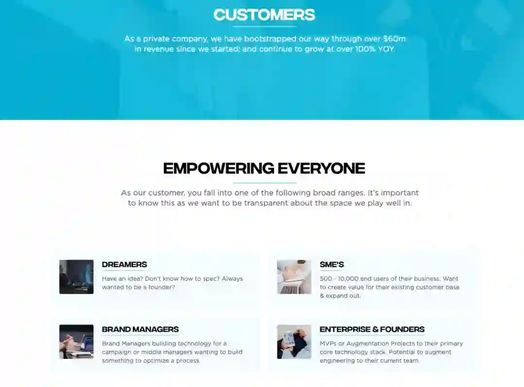 公司官网称,自成立以来,他们至今收入已经超过 6000 万美元,而且还在以 100% 的速度增长。预计 2020 年底前收入超过 1 亿美元。