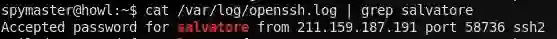 根据攻击文件的内容,我将此次攻击命名为了“Dota Campaign”。在此攻击活动中,攻击者通过弱SSH凭证获取到了目标设备的初始访问权。我的SSH蜜罐所使用的用户名和密码均为salvatore,下面给出的是我SSH日志的初始登录数据: