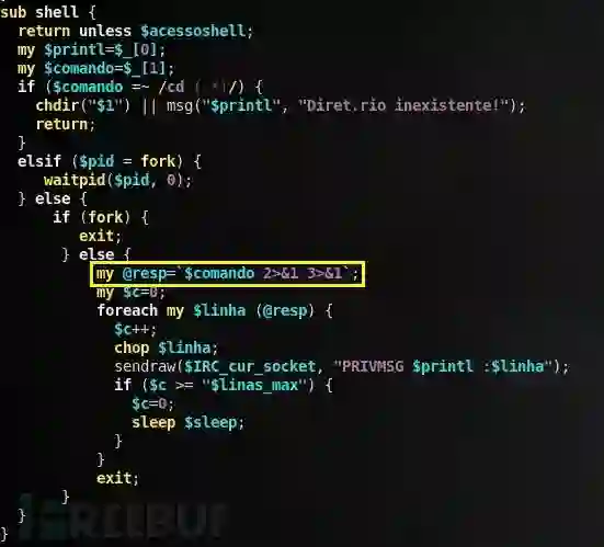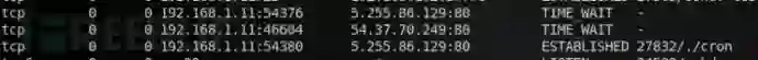 $comando指的就是系统命令了,看来这又是第二个后门,而这个后门基于的是IRC信道。我们可以通通过netstat命令来查看信道的连接和建立: