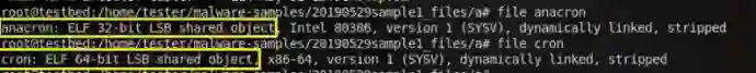i686架构针对的是32位环境,x86_64架构针对的是64位环境。如果cron是64位代码,那么anacron就是32位的了。运行之后我们也证实了这一点: