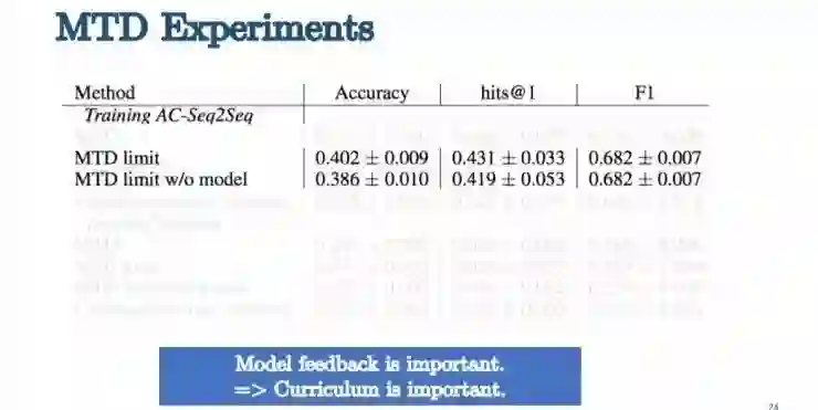 在模型有反馈和没有反馈的两种不同情况下,其性能表现也有很大的差别。如果把模型反馈去掉,所有的指标都会下降,说明动态调整训练数据的动态分布是非常重要的。