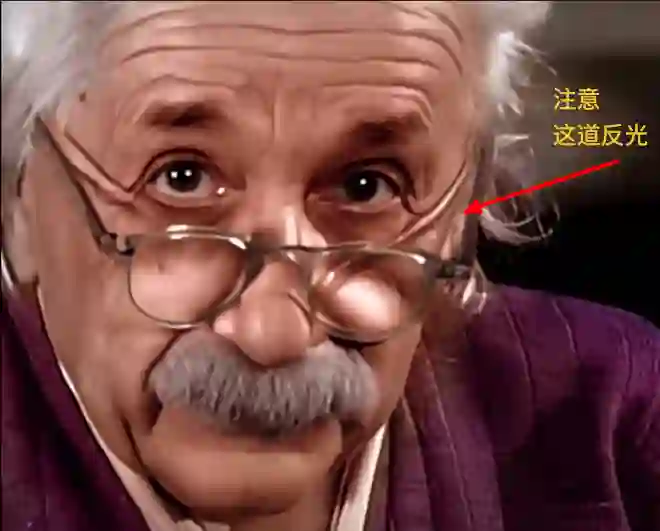 爱因斯坦那看透人类本质的狡黠的微笑、标志性的发型和帅气的胡渣子,甚至连额头的皱纹、眼镜片的反光都非常细腻,说话的语气和口音也非常逼真。