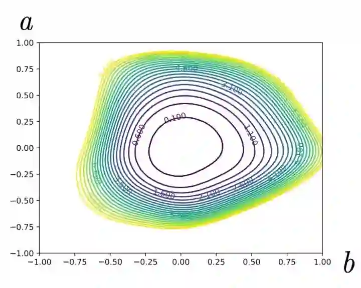 在模型中因为参数数以万计甚至数以百万计,而且我们的损失函数是关于参数的一个函数,因此损失函数也是个极其高高维的函数,难以可视化,但是,通过切片的手段,我们可以可视化出损失函数的一个切片出来,定性观察其局部特性。我们看下如何进行切片。