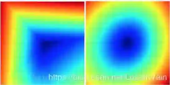 因此,这个由 组成的等高线图可以表示整个高维度损失函数的一个切面,提供损失函数的局部信息,当然不能描述整个损失函数,但是不失为一个提供参考的好方法。下图是SVM损失函数依据此方法的可视化结果[1],左图具有正则约束,而右图没有: