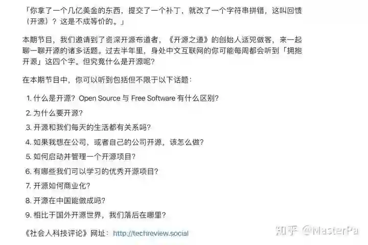 但中国开源的问题也不少,之前我还单独和开源之道的负责人适兕录过一期播客聊这个事情: