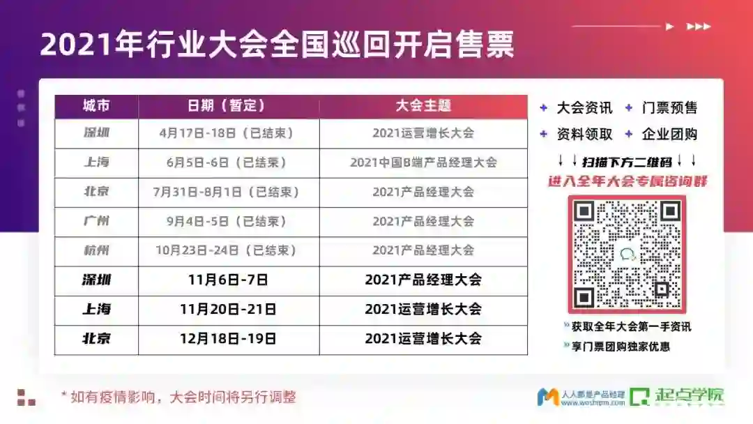 2021 产品经理大会最后一场深圳站,2021 运营增长大会上海、北京站即将开幕!