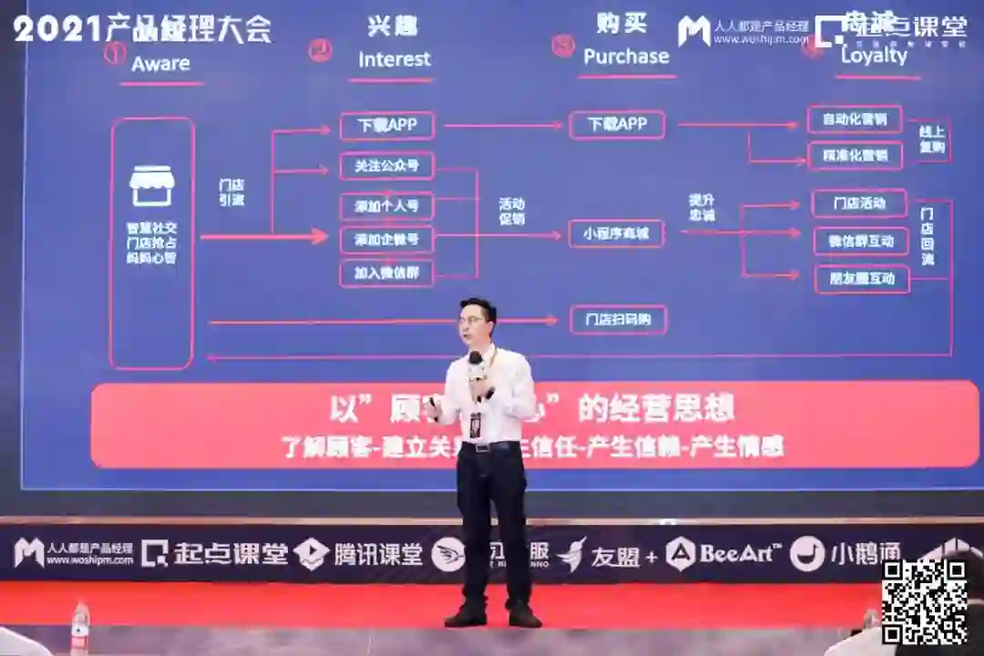 在演讲中,他强调了用户在整个增长过程中的重要性,表明私域流量是市场竞争的必然选择。而私域流量的本质,是客户关系管理。面对大家求而不得的私域流量,晏涛老师例举了两个例子,并分享了自己总结的方法论。