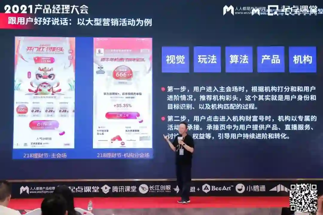 第八位分享嘉宾是蚂蚁财富营销产品负责人张德春,他分享的主题是《百万、千万、亿 产品经理的进阶之路》。