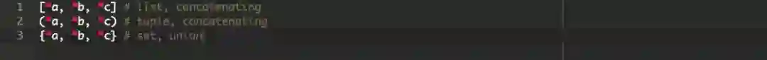 对 lists, tuples 和 sets(a, b, c 是可任意迭代的), 此方法同样有效: