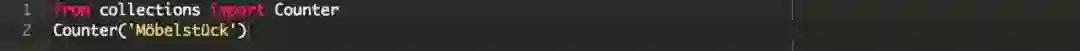 Python 3: Counter({"M": 1, "ö": 1, "b": 1, "e": 1, "l": 1, "s": 1, "t": 1, "ü": 1, "c": 1, "k": 1})