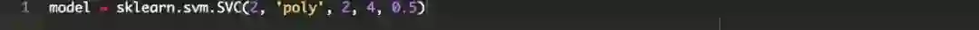 用户现在必须指定参数名称为 sklearn.svm.SVC(C=2, kernel="poly", degree=2, gamma=4, coef0=0.5)