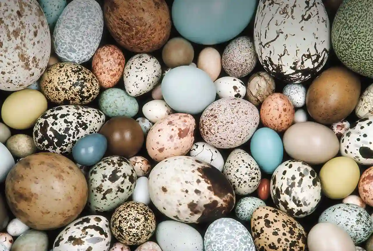 图片描述:来自Western Foundation of Vertebrate Zoology的一个收集展示了蛋各种各样的形状、图案和颜色