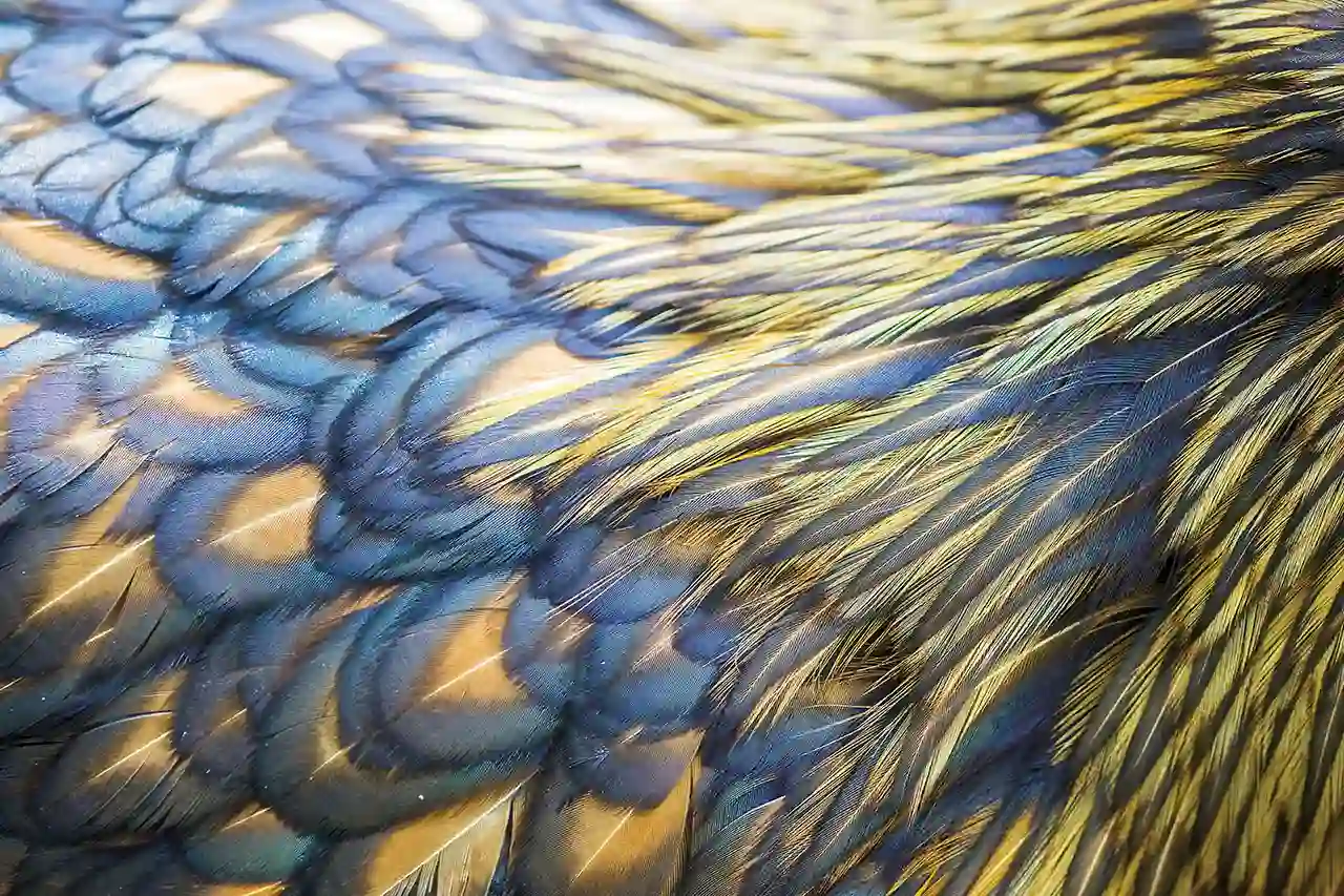 图片描述:金色花边的(gold-laced)奥尔平顿鸡的羽毛