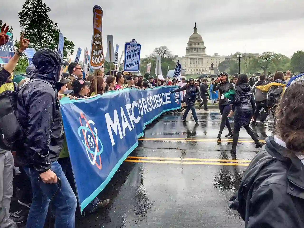 据Science杂志称,即便是在瓢泼大雨中,也有10万多人参加了华盛顿的游行。