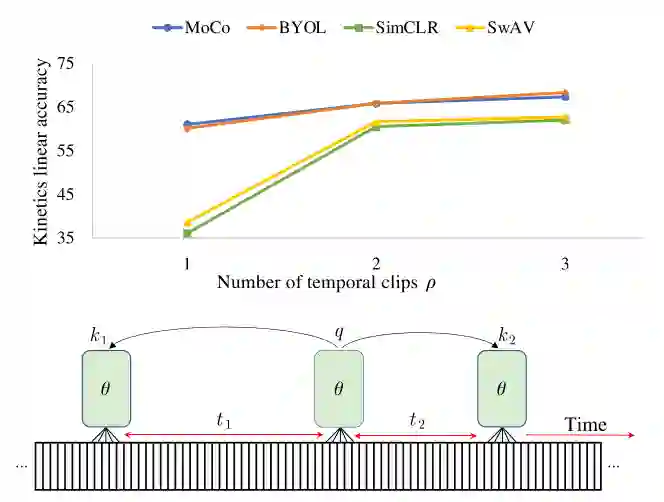 指出时空的Self-Supervised采样同一个视频的positive pair时间跨度越长效果越好,momentum encoder比优化目标重要,训练时间、backbone、数据增强和精选数据对于得到更好性能至关重要。