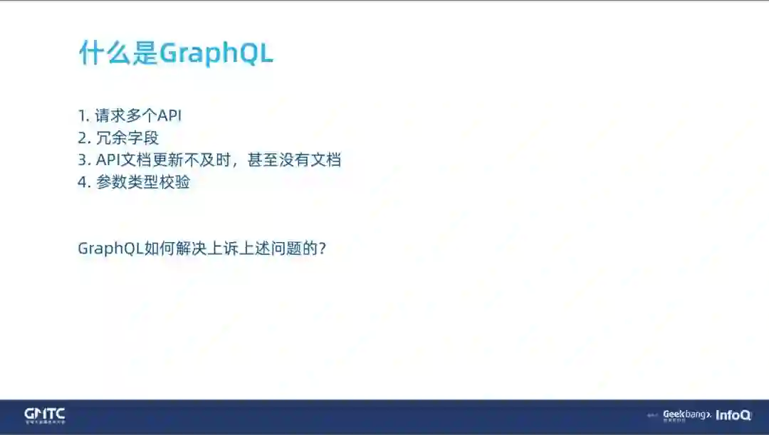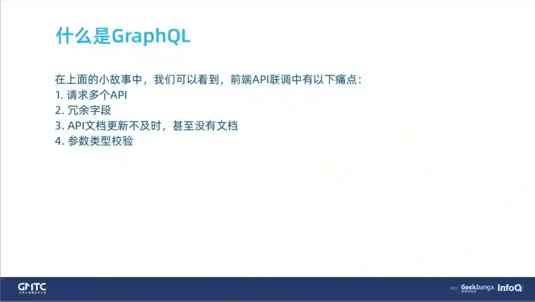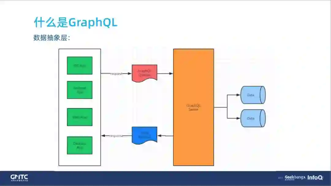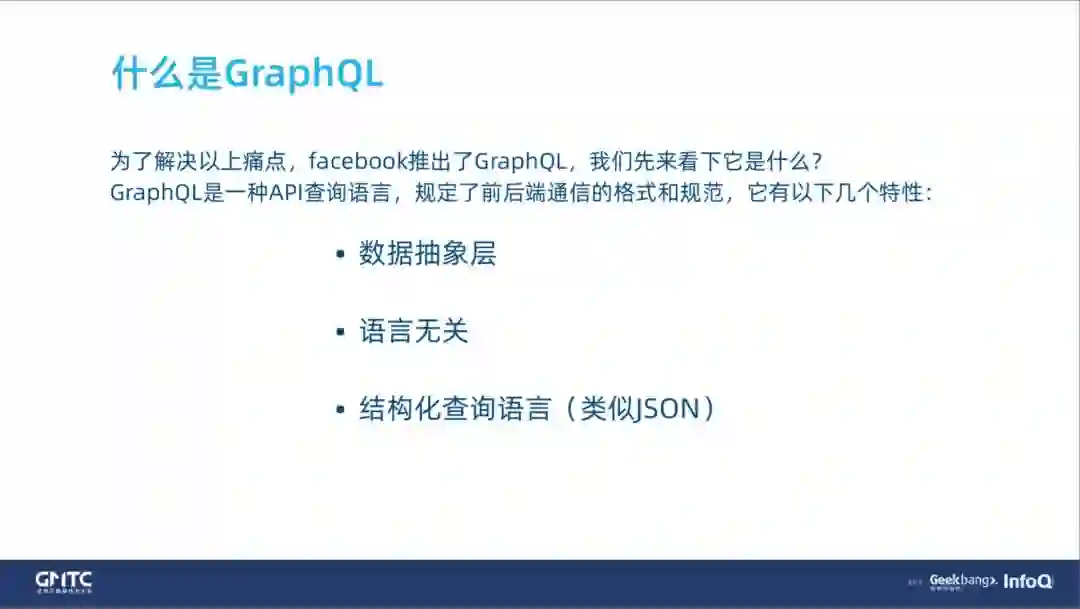 GraphQL 的定义是一种 API 查询语言,它其实是一种语言的规范,跟具体的实现是没有关系的。而且它是一层非常薄的数据抽象层,它既不会负责存储数据,也不会负责渲染数据;简单说就是一层 Proxy(代理),它把后端的数据做一些聚合、校验、判断,再返回给前端。对于前端来说,它是一种结构化的查询语言,长得很像 JSON,其实不是。