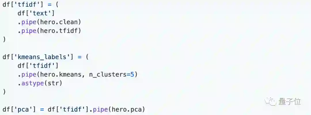 事实上,Texthero的优雅绝不仅仅在于上手的友好,最关键的是,它省略了大量重复性代码编写工作。