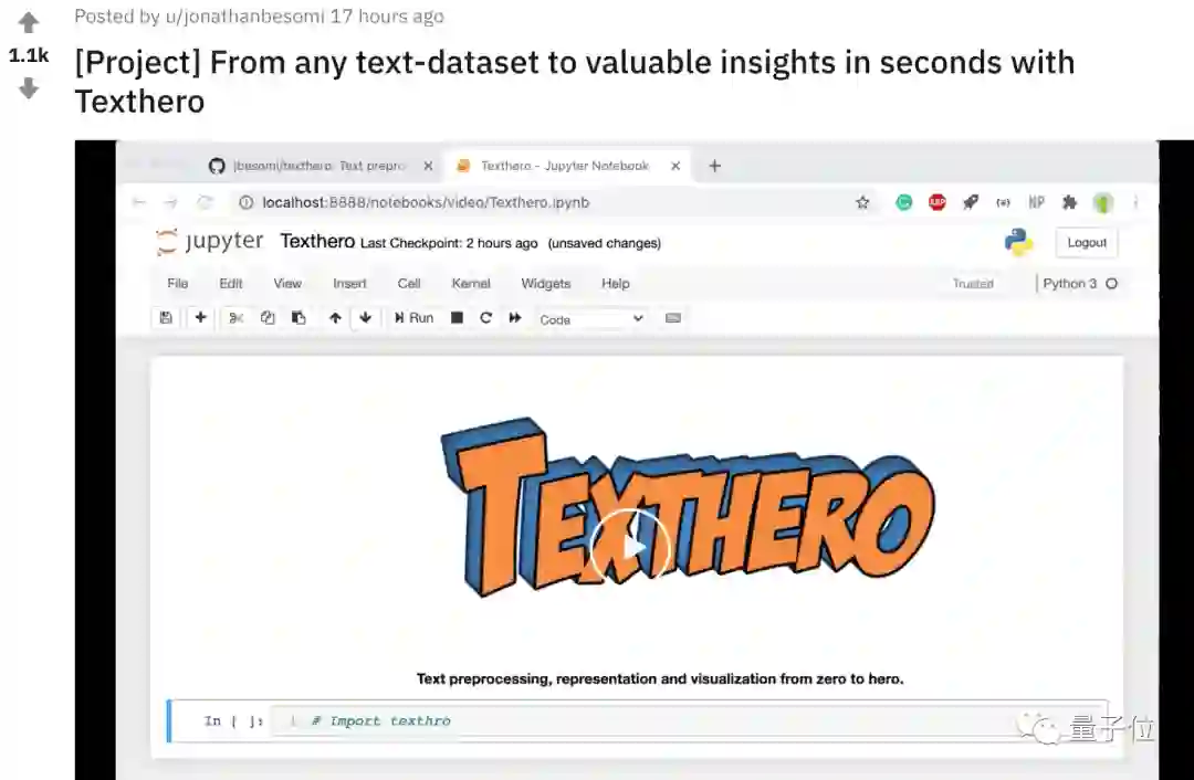 不仅编写快速,而且功能全面,预处理、表征、可视化样样精通,在Reddit上17个小时内就获得了近1.1k的热度。