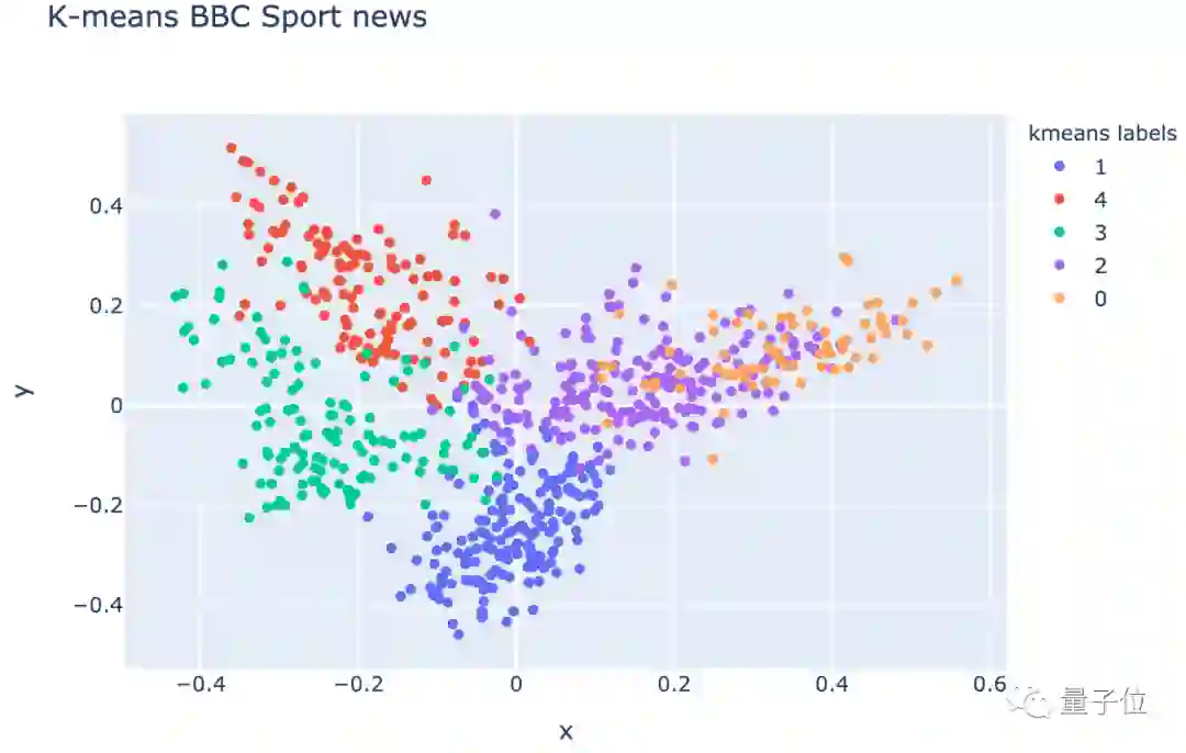 来看看Texthero进行数据预处理、各种算法后的可视化效果。
