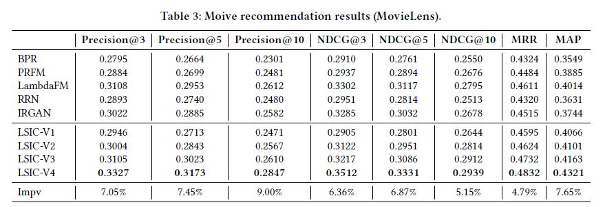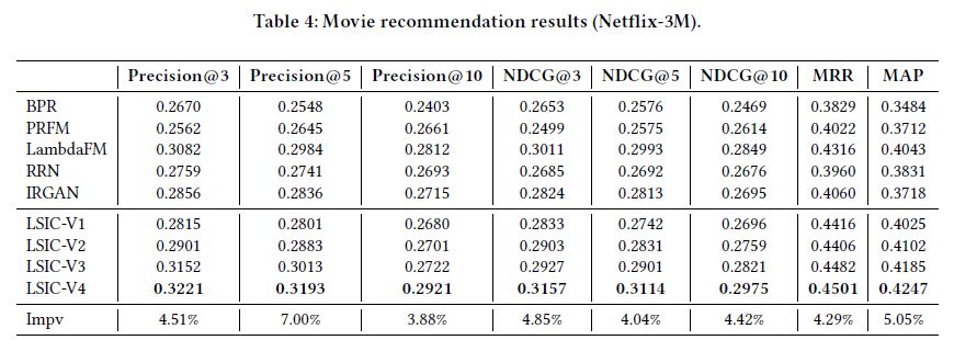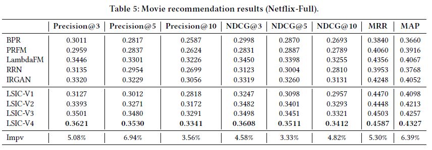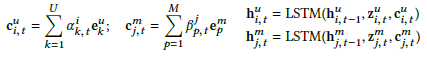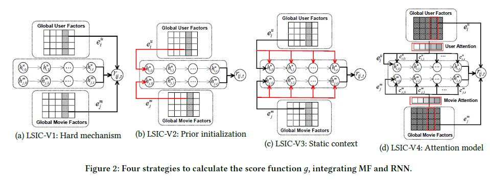 我们对 LSIC-V2 进展扩展,采样 MF 得到的 latent factors 作为两个 LSTM 的 static context vectors 加到每个时刻 t 的输入中,如图 Figure2(c)。