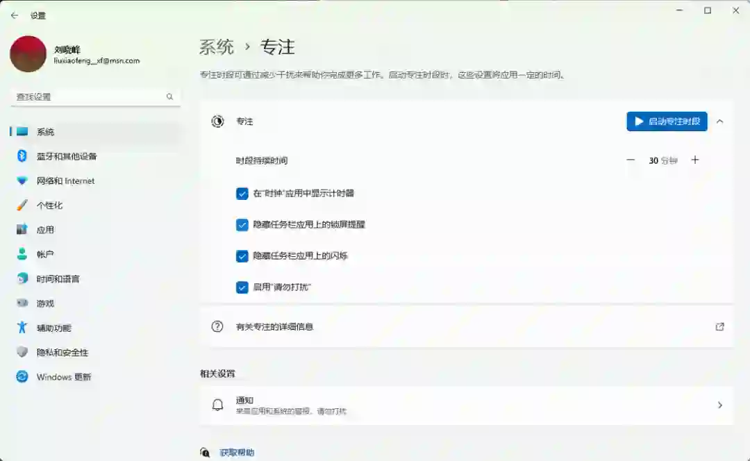 早在 Windows 10 中 Microsoft 就早早地引入了「专注助手」功能,但在那时相对死板的「专注助手」功能并不好用,既不能限定应用,也不能灵活开启。在 22H2 版本中 Microsoft 选择将原先的「专注助手」拆分为「勿扰」和「专注」两个功能。