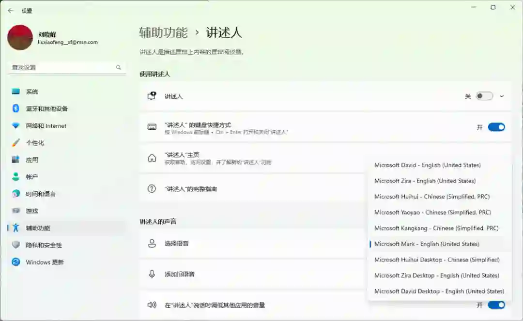同时讲述人功能也迎来了自然语音生成,如果你用过 Edge 里的「大声朗读」功能,那么你一定会被那个自然的语音语调所震惊。不过为了适应更多的本地情况,讲述人功能的自然语音生成功能可以需要依赖网络,但限制同样是目前只支持美式英语。